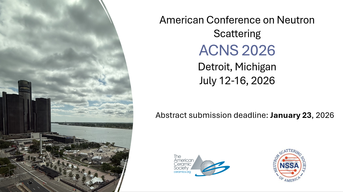 We look forward to seeing you at the 2026 American Conference on Neutron Scattering (ACNS), which will be held at The Renaissance Center in Detroit, July 12-16.